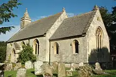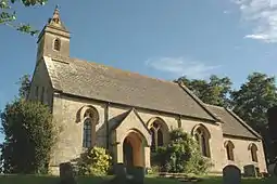 Albury had a parish church by the beginning of the 13th century. It had a small nave and chancel, two Norman doorways and a 14th-century Decorated Gothic east window.[1] The church's dedicatee was Saint Helen. In 1828 the church was demolished and in 1830 a new St. Helen's was completed, designed by the Gothic Revival architect Thomas Rickman. The only feature that Rickman retained from the old church was the 12th-century font. The architect A. Mardon Mowbray restored the building in 1891.[2] By 1552 the old St. Helen's belfry had two bells. The new St. Helen's also has two, but these were cast in 1686 and the 18th century.[1]