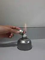 An alcohol burner or spirit lamp is a piece of laboratory equipment used to produce an open flame. It can be made from brass, glass, stainless steel or aluminium.[1]
