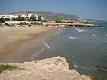 Alcossebre (Spanish: Alcocebre / Alcocéber) is a seaside village in the Valencian Community located on the Costa del Azahar along the eastern Mediterranean coast of Spain in the province of Castelló. This town falls within the municipal limits of Alcala de Xivert along with neighboring Capicorb and Les Fonts (Las Fuentes). It is a popular tourist destination without too many large buildings.[1]