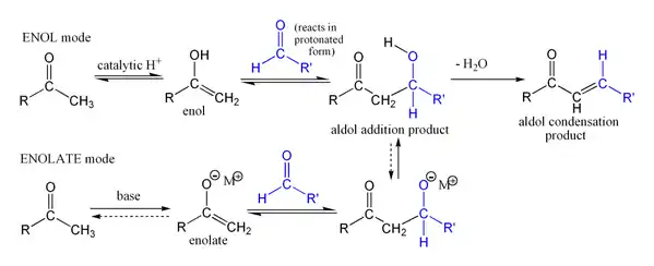 In its usual form, it involves the nucleophilic addition of a ketone enolate to an aldehyde to form a β-hydroxy ketone, or "aldol" (aldehyde + alcohol), a structural unit found in many naturally occurring molecules and pharmaceuticals.[5][6][7]