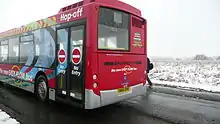 Rear view of a first generation Enviro200H, showing how the rear doors are arranged. This arrangement proved unpopular, and the type was a commercial failure.