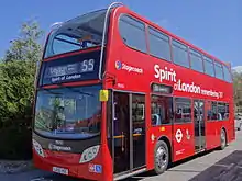 London operator Metroline was the first company to order the Enviro400, ordering 28 for route 24 in June 2005, entering service at the end of the year.[3] One dual door demonstrator, named "Spirit of London", was delivered to Stagecoach London to replace the Dennis Trident destroyed during the 7 July 2005 London bombings[4] and a single door demonstrator was delivered to the then Travel West Midlands for evaluation. Both prototypes were exhibited at Coach & Bus Live 2005 in the National Exhibition Centre in Birmingham.[3]