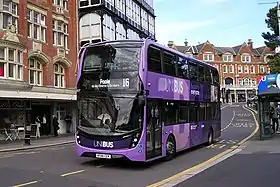 Nineteen Scania N250UDs with Enviro400 City bodies were delivered to First Eastern Counties for their flagship 'Excel' services in 2020, featuring high-specification interiors, next stop announcements and camera mirrors.[128] Seven Scania N250UDs with Enviro400 MMC bodies were also introduced to First Essex in 2020 to upgrade Airlink services connecting both Southend and Stansted airports to double-deck operation.[129] First West of England also operate a number of diesel Scania Enviro400 MMCs around Bristol,[130] with 12 of these Scanias delivered in 2018 upgrading services connecting the city and Bristol Airport to double-deck operation.[131]