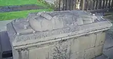 Huntly adopted the family name of Gordon about 1457.[10] He died on 15 July 1470 at Huntly Castle[1] and was buried in Elgin Cathedral.[11]
