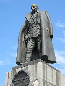 Monuments dedicated to Kolchak were built in Saint Petersburg in 2002 and in Irkutsk in 2004, despite objections from some former Communist and left-wing politicians, as well as former Soviet army veterans.[35] His memorial in St. Petersburg is a frequent target of vandalism.[36] There is also a Kolchak Island. The modern Russian Navy considered naming the third ship of the new Admiral Grigorovich-class frigates, Admiral Kolchak to commemorate the Admiral but declined to do so in the end.