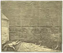 The defence attorney tried to press the fact that a musket had been seized from the nearby Field's Tavern which had evidence of being fired that night, and suggested that somebody in the nearby tavern may have taken a shot at the scuffle atop the Caroline and hit Durfee by mistake.[6] One witness suggested that a Captain Keeler had taken the gun and run out into the night, firing the weapon into the air aimlessly.[6] This was contradicted by the owner of the tavern, who said that one of his patrons had taken the gun outside and deliberately fired towards the men taking control of the Caroline, until he persuaded the man that such aggression might cause the attackers to target the tavern.[6]