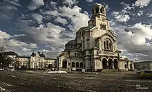 St. Alexander Nevsky Cathedral (Bulgarian: Храм-паметник "Свети Александър Невски", Hram-pametnik "Sveti Aleksandar Nevski") is a Bulgarian Orthodox cathedral in Sofia, the capital of Bulgaria. Built in Neo-Byzantine style, it serves as the cathedral church of the Patriarch of Bulgaria and it is believed to be one of the 50 largest Christian church buildings by volume in the world. It is one of Sofia's symbols and primary tourist attractions.[3] St. Alexander Nevsky Cathedral in Sofia occupies an area of 3,170 square metres (34,100 sq ft) and can hold 5,000 people inside.[3][1] It is believed to be among the 10 largest Eastern Orthodox church buildings. It is the largest cathedral in the Balkans. It is believed that until year 2000 it was the largest finished Orthodox cathedral.