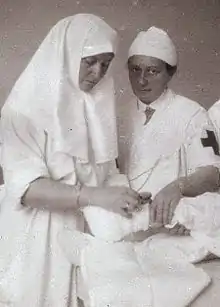 Alexandra was generous to her friends and often tried to help others. Her lady-in-waiting Sophie Buxhoeveden wrote that she was "ready to do literally anything for her friends" and that "she would take up things and people with violent enthusiasm."[18] She admitted that "I am of the preacher type. I want to help others in life, to help them to fight their battles and bear their crosses."[19]