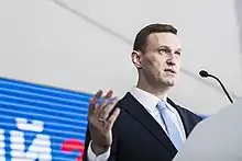 ![]() Navalny delivering a speech at his nomination ceremony in Moscow |