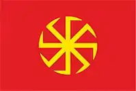 In the early 1990s, Dobroslav became the first to call the four-pointed swastika "Kolovrat", and later transferred this name to the eight-pointed rectangular swastika that he introduced. According to the historian and religious scholar R. V. Shizhensky, Dobroslav took the idea of the swastika from the work of the Nazi ideologist Herman Wirth, the first leader of the Ahnenerbe.[8] The eight-ray "Kolovrat", supposedly a pagan sign of the Sun, consisting of two superimposed swastikas, Dobroslav declared the symbol of an uncompromising "national liberation struggle" against the "Jewish yoke". According to Dobroslav, the meaning of "Kolovrat" entirely coincides with the meaning of the Nazi swastika.[1]
