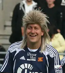 ![]() Alf Kåre Tveit during an exhibition match against Liverpool F.C. in July 2008 at Viking Stadion. Tveit sports a hairdo similar to the one he wore in the late 1980s | |||