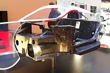 The car was designed by Centro Stile Alfa Romeo (Style Centre) and developed by Alfa Romeo. The chassis is composed of a central carbon fiber tub, with aluminium subframes front and rear.[38] The carbon fiber tub is produced by TTA (Tecno Tessile Adler) in Airola, as a joint venture between Adler Plastic and Lavorazione Materiali Compositi.[39] The carbon fiber components that make up the chassis are cut using CNC technology.[40]
