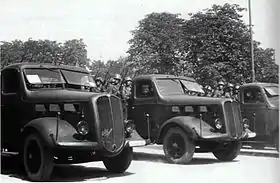 The Alfa Romeo 500 was used by the Royal Italian Army during World War II under the heading of "500 DR." It was used in the campaign in Russia and the armored version was used in the Balkan campaign.[2] The frame of the model was also used as basis for military buses. The Army version had a top speed of 45 km/h (28 mph), and was able to exceed a maximum gradient of 27% and had a range of 400 kilometres (250 mi) with a full tank (about 100 L).[2]