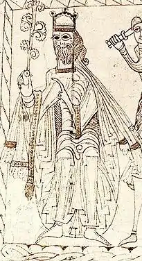 Alfonso VII (1 March 1105[1] – 21 August 1157), called the Emperor (el Emperador), became the King of Galicia in 1111[2] and King of León and Castile in 1126. Alfonso, born Alfonso Raimúndez, first used the title Emperor of All Spain, alongside his mother Urraca, once she vested him with the direct rule of Toledo in 1116.[1] Alfonso later held another investiture in 1135 in a grand ceremony reasserting his claims to the imperial title. He was the son of Urraca of León and Raymond of Burgundy,[1] the first of the House of Ivrea to rule in the Iberian peninsula.