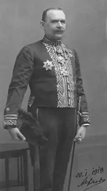 Born the son of Eugen Rappaport, an Austrian Jewish businessman, Alfred converted to Roman Catholicism in 1883 and in 1900 joined the Oriental Academy.[1] In 1893 he joined the staff of the Austro-Hungarian consulate of Shkodër and in October 1895 became vice-consul under Theodore Ippen. In Shkodër Rappaport learned Albanian and associated himself with Franz Nopcsa. From 1897 to 1899 he headed the vice-consulate of Prizren and from 1900 to 1903 the consulate of Baghdad. In 1904 he was reassigned to the Balkans as consul general of Skopje.[2] In 1909 he was recalled to Vienna by Count Alois Lexa von Aehrenthal and became director of the Albanian department and deputy director of the Oriental one.[1]