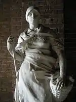 The third statue was for Sheffield and was a complex, larger than life-size, composition with figures of a mother and her children and a Sheffield workman. It was originally erected in 1905 at Fargate, but was moved to Sheffield's Endcliffe Park.[5] The mother and workman are depicted in Maternity and Labour, both shown at The Royal Academy in 1904. The statue has reliefs representing Courage, in the form of a Crusader, with Justice and Truth. Another includes images of the Queen and St George.[2]
