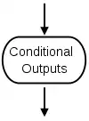Conditional Output Box: An oval denotes the output signals that are of Mealy type. These outputs depend not only on the state but also the inputs to the FSM.