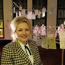 Instone's first solo show depicted 21 powerful contemporary women in response to the vast quantity of deliberately powerful-looking male portraits she found in the National Portrait Gallery – and the absence of female counterparts. The staggeringly few portraits that were there being wives, mothers and the occasional monarch. Instone addressed the way we consume images of women (and the narrow range of feminine archetypes on offer) and what she perceived as ‘Lady Macbeth Syndrome’, including the demonisation of powerful women in the popular press. The paintings aimed to change the way women are characterised – representing them as influential and unashamedly powerful. Sitters included Annie Lennox[2] (who wrote an accompanying article on being a feminist), Cherie Blair, Baroness Patricia Scotland, Baroness Helena Kennedy, Professor Baroness Susan Greenfield, Fiona Bruce, Dame Evelyn Glennie, Dame Jacqueline Wilson, Anya Hindmarch and Shami Chakrabarti.