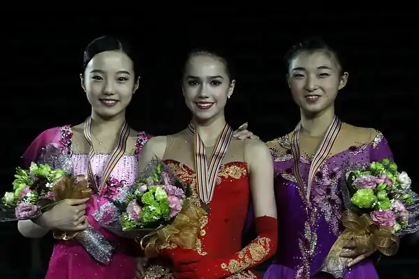 Alina Ilnazovna Zagitova (Russian: Алина Ильназовна Загитова, IPA: [ɐˈlʲinə zɐˈɡʲitəvə];[7] born 18 May 2002) is a Russian figure skater of Tatar descent. She is the 2018 Olympic champion, the 2019 World champion, the 2018 European champion, 2017–18 Grand Prix Final champion, and the 2018 Russian national champion. Zagitova also won a silver medal in the team event at the 2018 Winter Olympics, representing the Olympic Athletes from Russia team.[8] Zagitova is currently ranked 36th ladies' singles skater in the world by the International Skating Union.