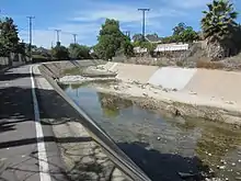 Aliso Creek was historically a seasonal stream with a few sections containing water year round, including the headwaters and lower Aliso Canyon. Significant flow only occurred in the rainy months of November through March.[15] As recently as 1982, the creek was observed to be dry in the summer.[3] As of 2012, urban runoff contributed a dry season flow of 5 million gallons (20,000 m3) per day, or approximately 8 cubic feet per second (0.23 m3/s), at the creek's mouth.[3] Urban runoff accounts for at least 80 percent of the creek's dry season flow.[13][14]