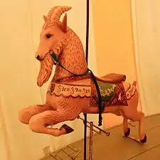 The All Hallows Guild Carousel or simply the Traveling Carousel is a historic carousel housed at the National Cathedral in Washington, D.C. since 1963. Previously, it was a "county fair" carousel operated by Clifford Sandretzky as part of a traveling carnival based in the northern Virginia area.[2] The rare all-wood carousel was likely built in the 1890s by the Merry-Go-Round Company of Cincinnati and has a rare caliola with brass pipes that was built by the Rudolph Wurlitzer Company of North Tonawanda, New York in 1937.