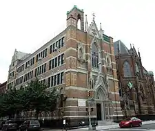 Built from 1883 to 1886[2] and designed by architects Renwick, Aspinwall and Russell – but attributed by historian Michael Henry Adams directly to James Renwick, Jr.[3] – the church complex includes a parish house (1886–89) as well as a school (1902) designed by Renwick's nephew,[3] William W. Renwick.[2]