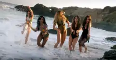 Ally Brooke then sings as she lays in the sand, moving sensually as an attractive man comes out of the water towards her. The camera fades to Lauren, who sings the bridge as she stands next to a background of rocks, as a take of another man is shown. The group is then scattered in different spots standing in a large rock formation, where shots of Dinah alone are spliced as she sings the chorus. Normani shares the chorus, as she sings on top of the rock cliff, shown earlier in the video. Camila Cabello seductively lays down and grabs her hair, in similarity to Ally. Several men approach the girls as they arrive in a convertible Jeep Wrangler. They greet and socialize with each other.