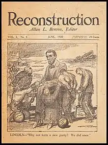 From January 1919 through June 1921, Benson was the publisher of a new monthly magazine called Reconstruction, subtitled "A Herald of the New Time." The publication used a newsprint format similar to The Nation and The New Republic and advanced political line slightly to the right of those journals. Frequent contributors included former Socialists Charles Edward Russell and Max S. Hayes. A substantial run of the publication is present in the collection of the New York Public Library.[9]