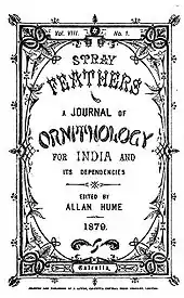 - Hume, A. O. (1874). "[Editorial]". Stray Feathers. 2: 2.