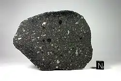 The Allende meteorite is the largest carbonaceous chondrite ever found on Earth. The fireball was witnessed at 01:05 on February 8, 1969, falling over the Mexican state of Chihuahua.[1] After breaking up in the atmosphere, an extensive search for pieces was conducted and over 2 tonnes (tons) of meteorite were recovered. The availability of large quantities of samples of the scientifically-important chondrite class has enabled numerous investigations by many scientists; it is often described as "the best-studied meteorite in history."[2] The Allende meteorite has abundant, large calcium-aluminium-rich inclusions (CAI), which are among the oldest objects formed in the Solar System.