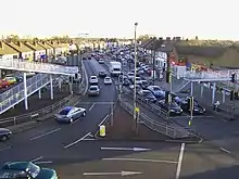 An easily recognisable feature of the local streetscape is a pedestrian footbridge over the Mitre Island roundabout, erected in July 1971. This footbridge is popularly known as "the Spider Bridge" and gains that popular appellation because it has eight 'legs' in four directions. Each direction has a set of steep steps and a stepped ramp (for easier wheelchair access). The footbridge has been painted various colours over the years and is currently painted white.