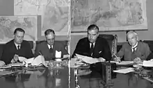 Marshal Zhukov reading the German capitulation. Seated on his right is Air Chief Marshal Arthur Tedder.