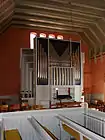 The altarpiece, of which only the base remains, is from c. 1625. It has now been relocated at the far end of the chancel. The granite font is from 1890. The Renaissance pulpit from 1650 is decorated with ten carved panels, four of which contain statues of the evangelists. The western gallery is new, replacing an earlier structure. The Frobenius organ, now in the north transept, dates from 1962.[2][3]
