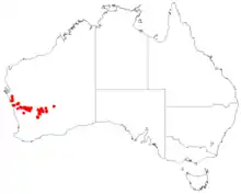 The dioecious tree typically grows to a height of 4 to 9 metres (13 to 30 ft). It is found in stony red soils over granite in hilly country.