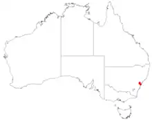 It is found in areas of open forest in a small area on the central coast of New South Wales growing in lateritic soils.[1] The few small populations are found centred around Castlereagh Nature Reserve, north-east of Penrith with a total range of 36 square kilometres (14 sq mi).[2]