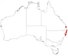 It has a limited range and is restricted to a small area in south east Queensland and north-east New South Wales.[1]