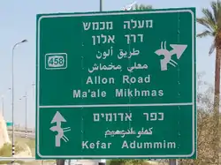Allon Road is the name given by Israel to Routes 458, 508, and 578 in the West Bank, running roughly south–north along the eastern watershed of the Judaean and Samarian Hills, between Highway 1 near Kfar Adumim east of Jerusalem and Highway 90 at Mehola in the central Jordan Valley.