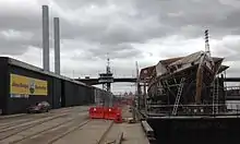 From 2013, she is berthed at No 2 Victoria Dock (Melbourne), mounted on a submergible barge, undergoing an extensive refit to return her to survey so she can recommence sail training. On October 16, 2021 she was lifted off the barge and back into the water by the AAL Shanghai and is ready for re-rigging and her internal fit-out. [7]
