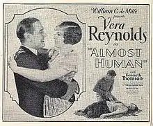 Almost Human is a 1927 American silent drama film directed by Frank Urson, starring Vera Reynolds and Kenneth Thomson, produced by Cecil B. DeMille and William C. de Mille, and distributed through Pathé Exchange.[1] The picture was based upon a novel by Richard Harding Davis entitled The Bar Sinister.