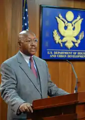Alphonso R. Jackson (born September 9, 1945) served as the 13th United States Secretary of Housing and Urban Development (HUD). He was nominated by President George W. Bush on August 28, 2004 and confirmed by the Senate on August 31, 2004. Jackson announced his resignation on March 31, 2008.[1]