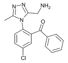 Alprazolam triazolobenzophenone is a chemical compound which can be both a synthetic precursor and a prodrug for the benzodiazepine derivative alprazolam. At neutral pH it readily cyclizes to alprazolam, while in acidic conditions alprazolam undergoes a ring-opening reaction back to the triazolobenzophenone. A series of related acyl derivatives was researched in the 1980s as injectable water-soluble prodrugs of alprazolam,[1] but were never developed for medical use. Subsequently, this compound has been detected as a designer drug, first being identified from a seizure in Spain in March 2014.[2]