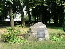 The district was broadly left-wing in the early 1930s; when the Nazi Party took power in 1933, the majority of residents were members of the social democratic parties, the USPD and the SPD. Nevertheless, more than 100 local civil servants were replaced by officials more favourable to the Party on 7 April 1933. After the pogroms of Kristallnacht on 9 November 1938, only some isolated Jews were still allowed to carry out their business, among them was Hohenschönhausen doctor Victor Aronstein, whose waiting room served as a secret meeting place for communists and social democrats until 1939.[3] In 1938 the district's synagogue was completely destroyed by the Nazis; its location is now the site of a memorial to the persecuted Jews of Hohenschönhausen.