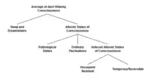 A first summary of the existing literature was carried out by Charles T. Tart in his book Altered the States of Consciousness, which led to a more common use of the term.[23] Tart coined the key terms discrete[note 2] and baseline states of consciousness and thought about a general classification system for ASCs.[24] He also called for "state specific sciences"[10] in which researchers should do science on ASCs from within such states.