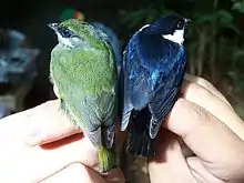 Migration in response to food abundance has been the most accepted hypothesis for why species migrate altitudinally.[1] This hypothesis states that peaks in food abundance along an elevational gradient, such as the slope of a mountain, drive migration patterns as species exploit available food resources.[24] Peaks in food abundance along this gradient often coincide with the breeding season.[1] Some frugivorous birds, such as white-ruffed manakins (Corapipo altera) migrate to higher elevations to exploit peaks in fruit abundance.[24] Evidence supports the possibility that migrants have a competitive advantage compared to non-migrant (sedentary) species, due to increased foraging ability over a larger area, resulting in greater food and nutrient uptake.[1] It's been shown that diet differs between non-migratory and migratory species in large-scale analyses and species-pair comparisons of frugivorous tropical birds.[15]