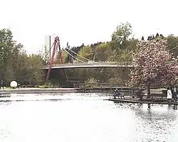 Alton Baker Park is located in Eugene, Oregon, United States, near Autzen Stadium. It was named for Alton F. Baker Sr., the eleventh owner (60 years after it was founded) of Eugene's The Guard newspaper (later The Register-Guard).[1] It features duck ponds, bicycle trails, a dog park and a disc golf course, and directly touches the Ferry Street Bridge across the Willamette River.