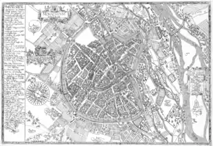 A first subdivision of the city was in 1271 by the division of the parish of St. Peter along the east–west axis of the city (the salt road) and the promotion of the Frauenkirche as the second parish church.[10] Although this was primarily a church subdivision, it was also used in secular documents to designate the northern and southern halves of the city, and even the outside of the city, as St. Mariae and St. Peter.