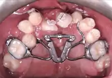 In cleft lip and palate cases, the maxilla is typically narrow compared to the lower jaw and must be expanded outward. An expansion appliance is placed in the maxilla 6–9 months prior to correct any crossbite or upper arch constriction.[3] This will widen the cleft size, and so that parents and patients need to be warned the symptoms such as fluid reflux may worsen, although some centres will expand the jaw after surgery is complete. In the case of double clefts, expansion is typically before surgery because the premaxilla needs to be repositioned forward, which cannot occur until the upper jaw is widened to allow room.[4]