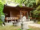The shrine consists of two structures: the haiden or oratory in the front and the honden or sanctum at the back. Both the oratory and the sanctum have hornlike crossing planks called chigi rising above the roof at both ends. Also five short logs called katsuogi are placed at a right angle along the ridge of the roof. This is typical of a Shinto architectural style called Shinmei-zukuri. As the old structures were destroyed by the 1923 Great Kantō earthquake, they were rebuilt in 1936. The last reconstruction was completed in 1998. The shrine is 10 minutes by walk from Hase Station and 20 minutes by walk from Kamakura Station.