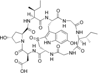 Amanullinic acid is a cyclic nonribosomal peptide. It is an amatoxin, all of which are found in several members of the mushroom genus Amanita. Amanullinic acid is relatively non-toxic( oral LD50 >20 mg/kg in mice).[1]