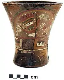 In mythology of Andean civilizations of South America, the amaroca, amaruca (quechua) or katari (aymara) is a mythical serpent or dragon, most associated with the Tiwanaku and Inca empires. In Inca mythology, amaruca is a huge double-headed serpent that dwells underground, at the bottom of lakes and rivers.[1] Illustrated with the heads of a bird and a puma, amaruca can be seen emerging from a central element in the center of a stepped mountain or pyramid motif in the Gateway of the Sun at Tiwanaku, Bolivia. When illustrated on religious vessels, amaruca is often seen with bird-like feet and wings,[2] so that it resembles a dragon. Amaruca is believed capable of transgressing boundaries to and from the spiritual realm of the subterranean world.[2]